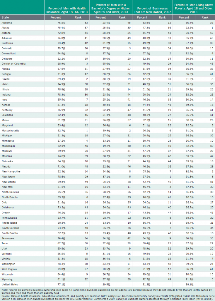 Table B4.1. State-by-State Data and Rankings on Poverty and Opportunity Among Men